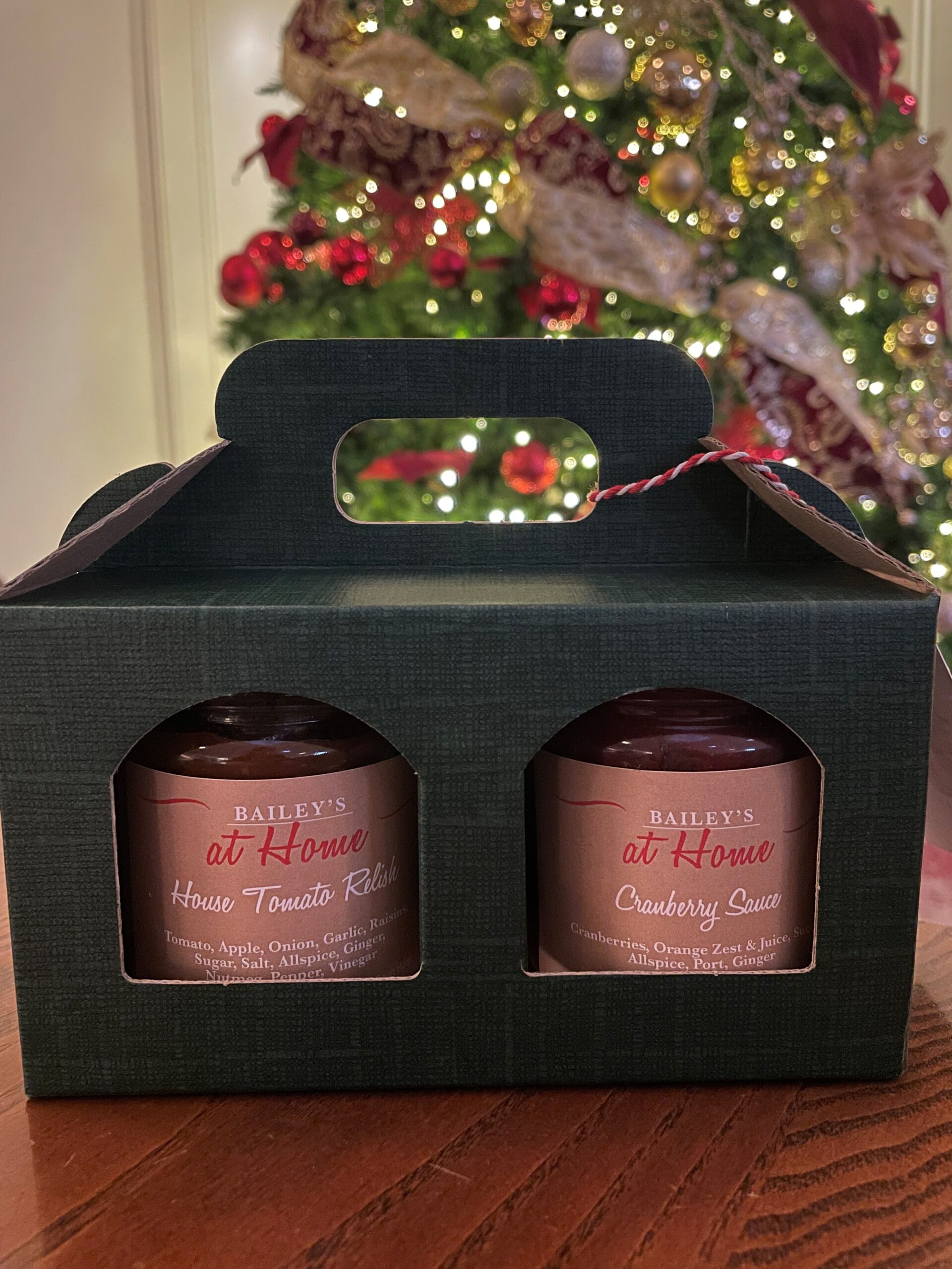 A Gift Set of 2 Bailey’s at Home Signature Homemade Sauces and Relish, straight out of our Kitchen – Tomato Relish & Cranberry Sauce. Presented in a brown gift box